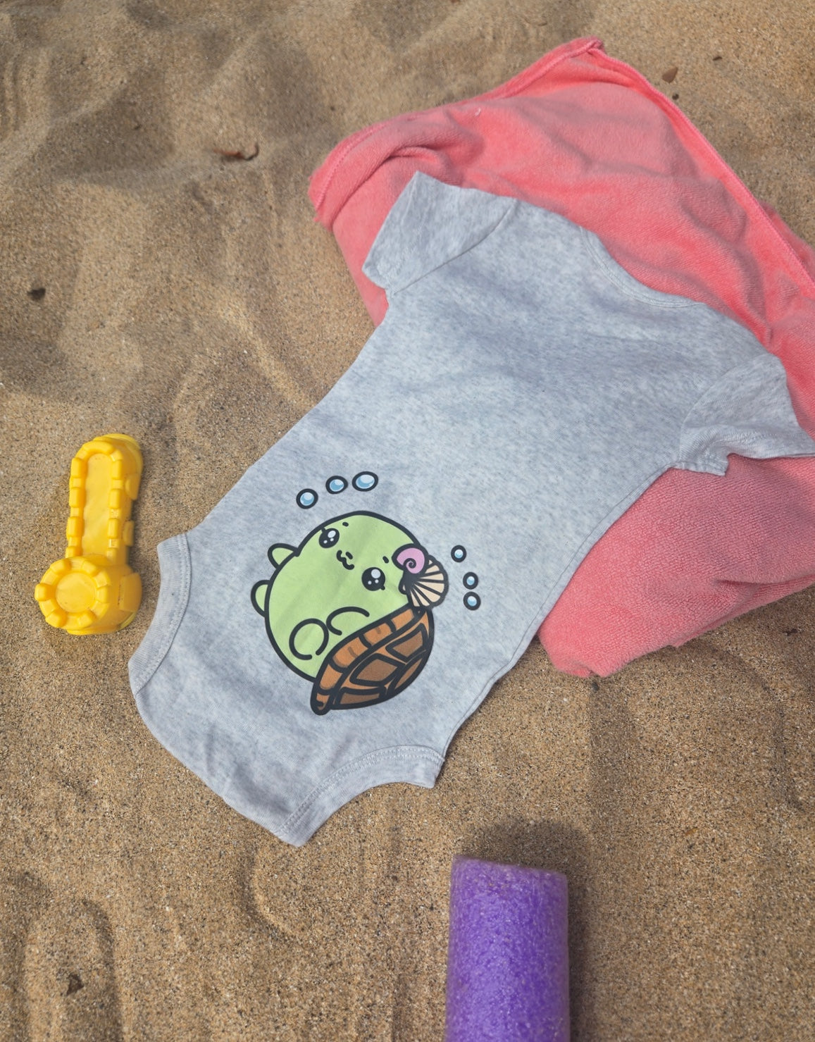 A perfect gift for baby showers or beach days, this onesie is your first step to spreading aloha—one chubby cheek and turtle hug at a time.